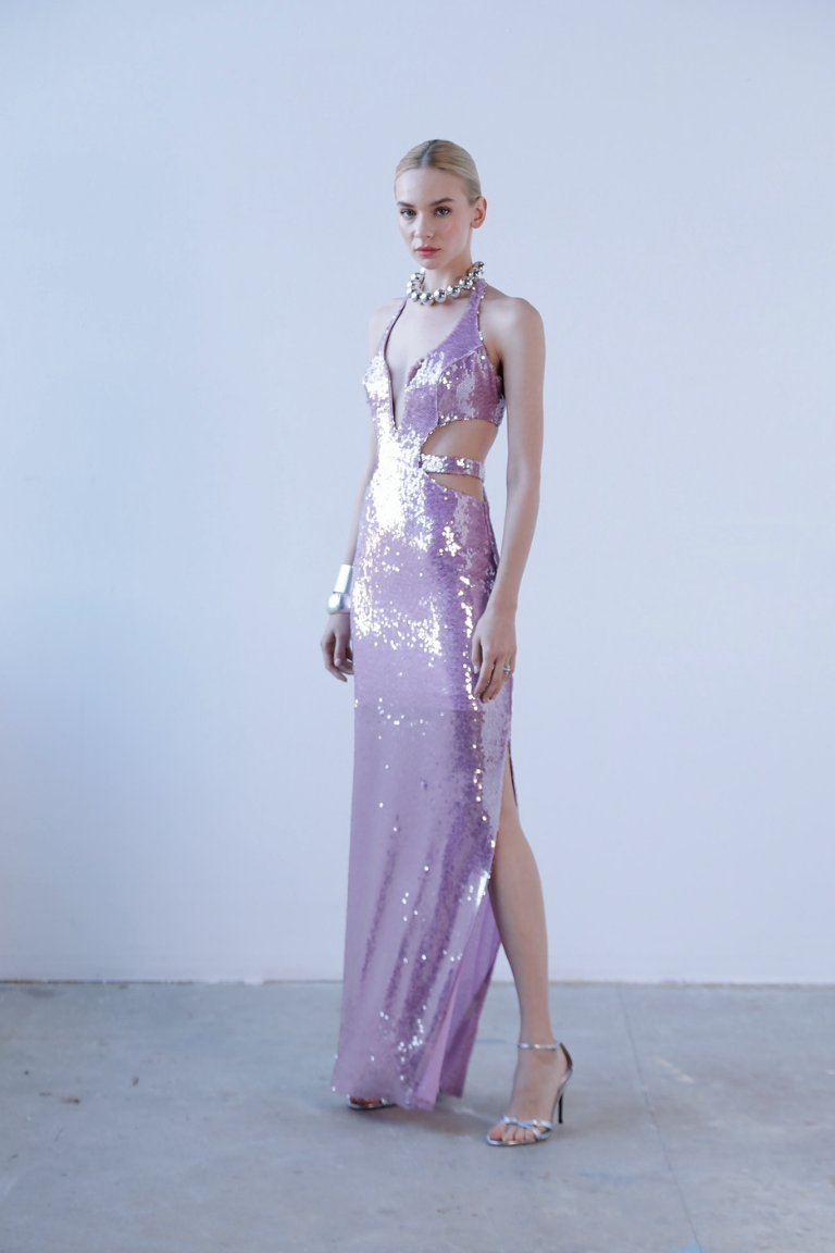 Yandan yırtmaçlı uzun elbise